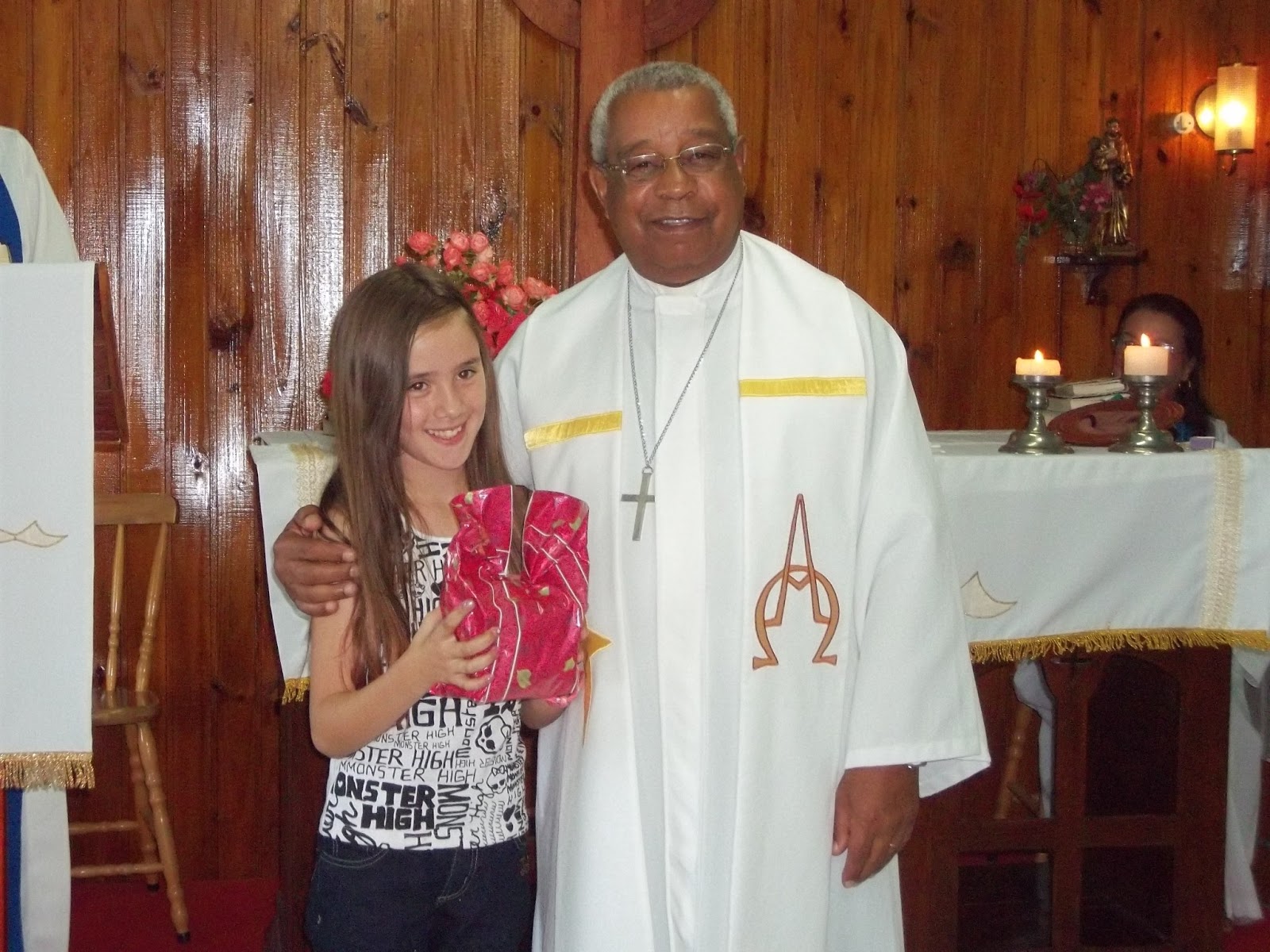 Todos participaram de uma celebração intensa e de momentos de louvor e fé, com a intenção de oferecer glória a Deus por tudo que tem se realizado pela Comunidade do Jardim América. Em agradecimento a visita a menina Alice Classen entregou em nome da Comunidade da Missão São Francisco, um presente para o Rev. Aires.